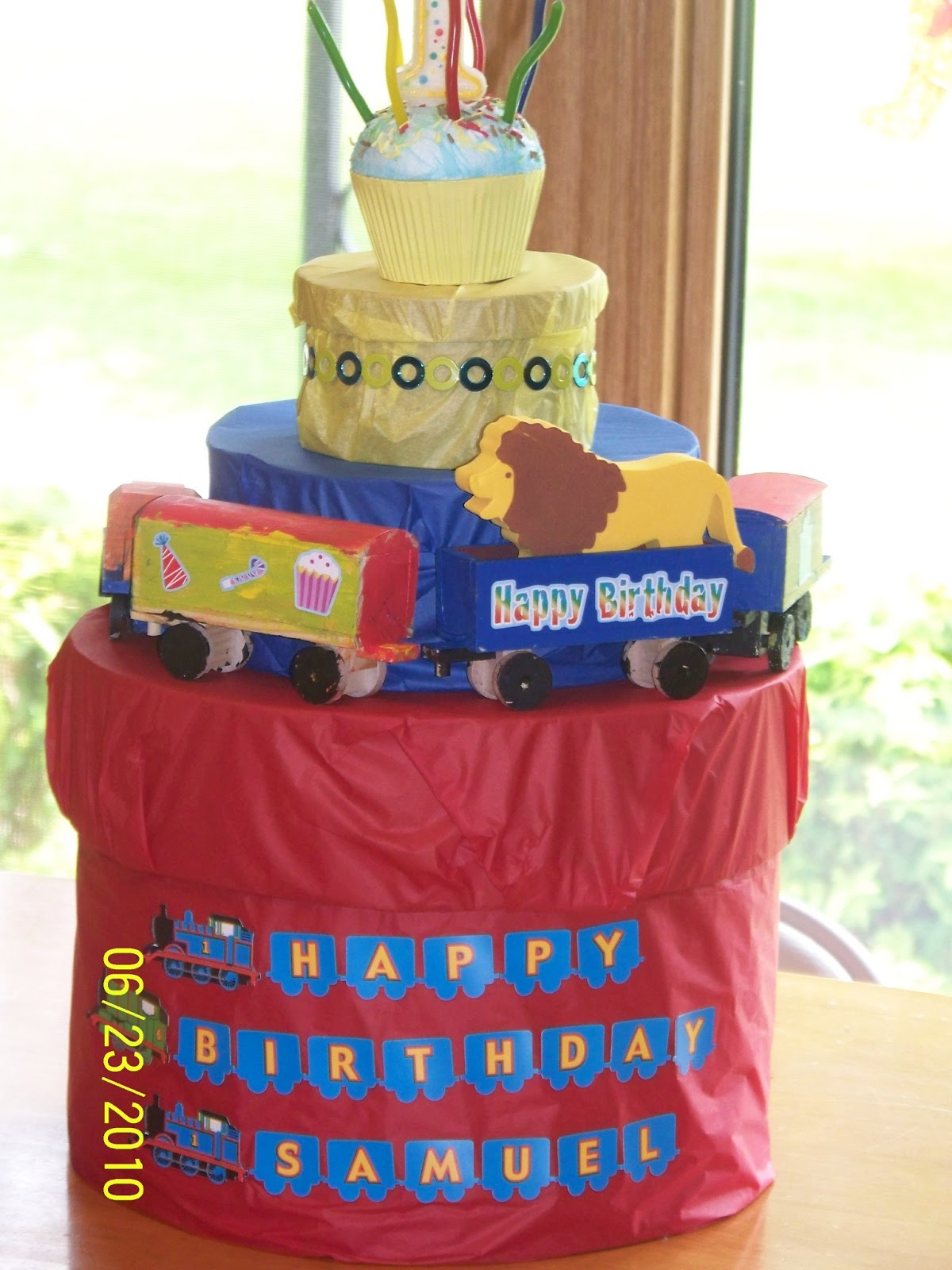 Directions: Fill boxes with token, if desired. Then, wrap boxes (empty or with a token/treasure/gift) with wrapping/tissue paper, or fabric. Secure with tape and/or or ribbons. Next, decorate paper if desired with stickers (spelling out their name, writing happy birthday, etc), stack toys on top or around towers of cake (these can match your theme or be something special to save for years to come). Stack boxes to give look of a tiered cake! Have fun with it!